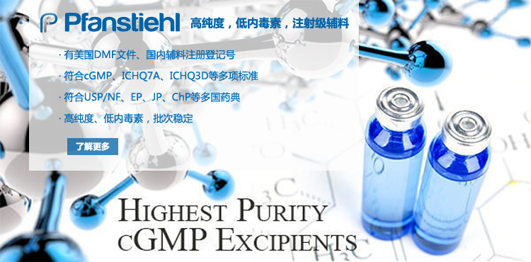 “熱烈祝賀Pfanstiehl的注射級甘氨酸Glycine(G-140)喜獲CDE登記號F20250000403, 這是Pfanstiehl產品獲得的第18個CDE登記號!”甘氨酸在醫藥輔料制劑中應用廣泛,, 可作為緩沖劑,增溶劑,穩定劑等,具有諸多優勢。Pfanstiehl秉承一貫高品質理念,為滿足全球生物制藥行業對于高品質甘氨酸的需求,隆重推出的注射級甘氨酸Glycine (G-140), 具有超高純度,超低內毒素,超低金屬殘留的特點,單獨檢測29種金屬離子,并且新增DNA,RNA,DNA酶,RNA酶和脂肪酶,亞硝酸鹽等多項質量指標的檢測,符合多國藥典規定(USP, EP, BP, JPE, ChP),可用于生物治療性藥物和疫苗的生產。產品信息:· 產品名稱:Glycine, High Purity, Low Endotoxin, Low Metals, USP, EP, BP, JPE, ChP (G-140)· 中文名稱:甘氨酸· 分子式:C2H5NO2· 分子量:75.07 g / mol· CAS號:56-40-6· 產品貨號:G-140產品特點: · 超高純度,超低內毒素,超低微生物含量,超低金屬雜質殘留· 質量指標新增DNA,RNA,DNA酶,RNA酶,脂肪酶和亞硝酸鹽檢測· 符合多國藥典:USP, EP, BP, JPE, ChP· 符合ICH Q3D標準· 符合GMP標準· 已獲DMF和CDE登記號 產品應用:· 緩沖劑· 穩定劑· 增溶劑如果您對Pfanstiehl注射級別Glycine G-140感興趣,歡迎聯系Pfanstiehl 中國區代理商北京西美杰科技有限公司獲得如下詳細的產品概況說明文件和測試樣品。Pfanstiehl Inc.最新產品系列如下,歡迎聯系北京西美杰科技有限公司獲取100g裝免費樣品。北京西美杰科技有限公司為Pfanstiehl中國代理,為客戶提供完善的技術支持與售后服務。歡迎撥打西美杰客服電話400-050-4006或者登陸網站www_xmjsci_com.zuche020.com了解更多信息。 更多>